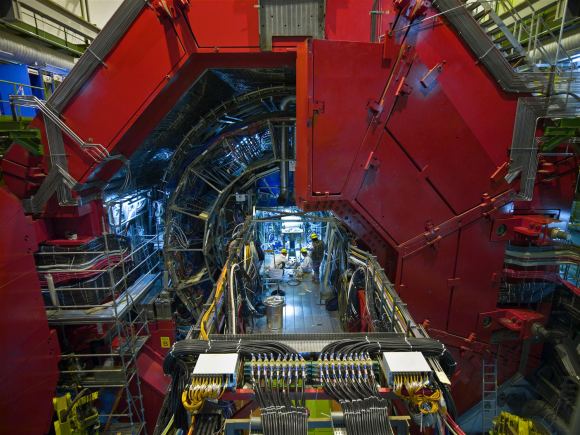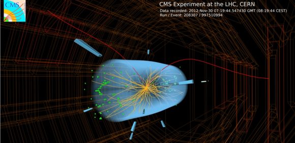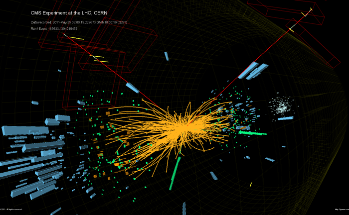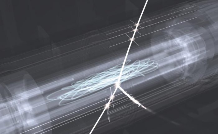 Muons, a type of lepton, shown being produced by the Large Hadron Collider. Credit: CERN