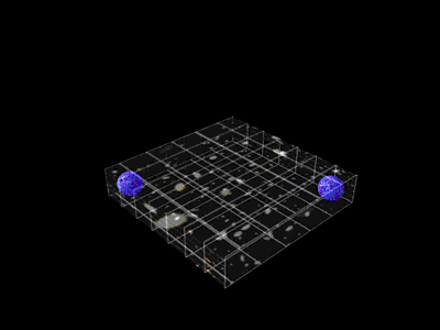 An animated image shows a collision between two subatomic particles embedded in our 3-D universe (or "brane").