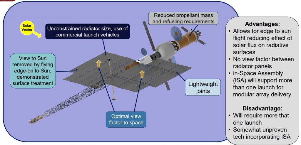 This illustration shows the basic design of the proposed quad-wing NEP system. Image Credit: From “ECI Modular Assembled Radiators for NEP VehicLes (MARVL), an Overview” by Stark et al. 2024.