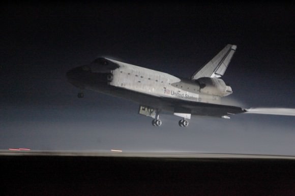 Space shuttle Atlantis wraps up the shuttle program with an early orning return to Kennedy Space Center in Florida. Photo Credit: Mike Deep for Universe Today