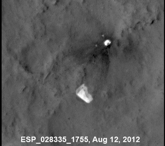 The images were acquired by HiRISE between August 12, 2012 and January 13, 2013. The different images show distinct changes in the parachute,
